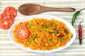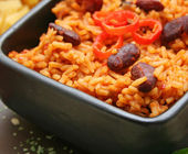 Pyszne danie z dwóch rodzajów ryżu na białym talerzu