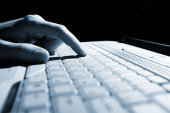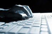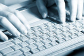 mężczyzna ręce wpisując na laptop