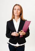 Zdjęcie "młoda kobieta w marynarkę i bluzka, pokazuje dwa białe prześcieradła, isol" może być wykorzystywane do celów osobistych i komercyjnych zgodnie z warunkami zakupionej licencji Royalty-free. Obraz jest dostępny do pobrania w jakości wysokiej rozdzielczości do 5760x3840.