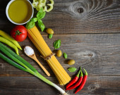 Włoskie i śródziemnomorskie składniki żywności na stare drewniane backgro
