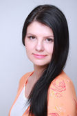 zbliżenie portret pięknej młodej kobiety o szczęśliwe myśli