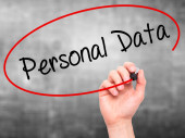 Człowiek w zapasie pismo dane osobowe z czarnego markera na wizualne scre