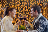 Zdjęcie "Młoda para romantyczny, siedząc na kanapie przed kominkiem, godz." może być wykorzystywane do celów osobistych i komercyjnych zgodnie z warunkami zakupionej licencji Royalty-free. Obraz jest dostępny do pobrania w jakości wysokiej rozdzielczości do 5760x3840.