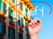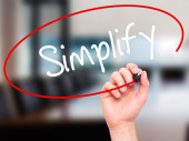 Zdjęcie "Ręka człowieka pisania Uprość z czarnym markerem na wizualne ekranie" może być wykorzystywane do celów osobistych i komercyjnych zgodnie z warunkami zakupionej licencji Royalty-free. Obraz jest dostępny do pobrania w jakości wysokiej rozdzielczości do 5760x3840.