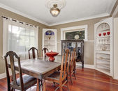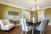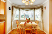 Doskonała kuchnia wnętrze białe, żółte ściany i drewniane
