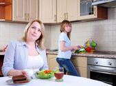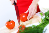 kobieta gotowania świeżego posiłku w domu