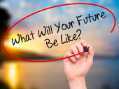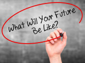 Zdjęcie "Ręką człowieka pisanie co będzie Twoja przyszłość jest jak? z czarnym marke" może być wykorzystywane do celów osobistych i komercyjnych zgodnie z warunkami zakupionej licencji Royalty-free. Obraz jest dostępny do pobrania w jakości wysokiej rozdzielczości do 5760x3840.