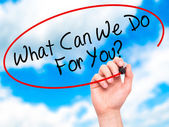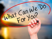 Ręką człowieka pisania, co może możemy dla Ciebie zrobić? z czarnego markera na vi