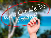 Zdjęcie "Ręką człowieka pisania, co może możemy dla Ciebie zrobić? z czarnego markera na vi" może być wykorzystywane do celów osobistych i komercyjnych zgodnie z warunkami zakupionej licencji Royalty-free. Obraz jest dostępny do pobrania w jakości wysokiej rozdzielczości do 5760x3840.