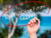 Ręką człowieka pisanie co będzie Twoja przyszłość jest jak? z czarnym marke