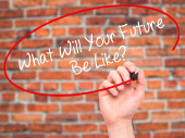 Zdjęcie "Ręką człowieka pisanie co będzie Twoja przyszłość jest jak? z czarnym marke" może być wykorzystywane do celów osobistych i komercyjnych zgodnie z warunkami zakupionej licencji Royalty-free. Obraz jest dostępny do pobrania w jakości wysokiej rozdzielczości do 5760x3840.