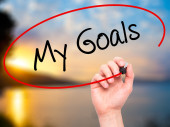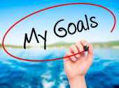 Ręką człowieka pismo, jakie są Twoje cele? z czarnego markera na visu