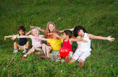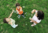 szczęśliwy piękne dzieci bawiące się na zewnątrz ziemi