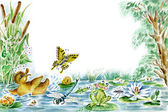 dzieci na spacer w parku karmienia łabędzie na stawie