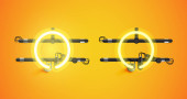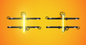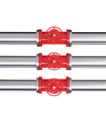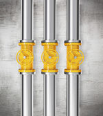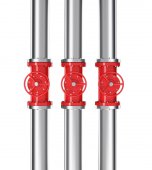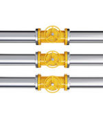 Three prallel horizontal metal pipes with yellow taps.