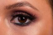 Piękno portret pięknej dziewczyny. Jasny makijaż uroczysty, brokat, błyszczy, jasne szminka.