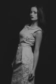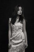 Portret przepiękny brunetka. Tajemnica, smutek, niepewność, ludzkich emocji.