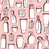 Colorful seamless pattern with baby girl goods. Cute texture with different baby items. Ready design for baby products, clothes, wrapping paper, baby's store