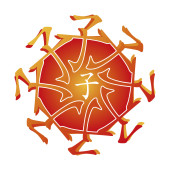 Symbol z chińskie hieroglify. Tłumaczenie 12 Zodiak zwierzęta oddziału, feng shui znaki hieroglif: "Szczur". Pięć elementów. Elementem ziemi Yang.