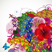 Piękna młoda kobieta z tropicl kwiaty we włosach dziedzic.
