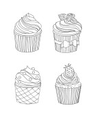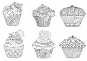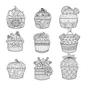 Ręcznie rysowane babeczki do kolorowanki dla dorosłych