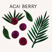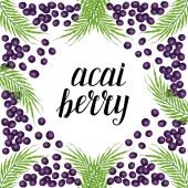 Acai berry. Organic super food ingredient. Vector hand drawing sketch illustration