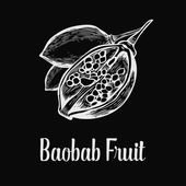 Baobab tree, fruit, nut engraving vintage Hand drawn sketch vector illustration. Black on white background.