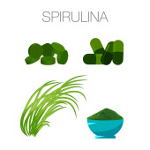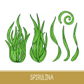 Spirulina Superfood organiczny zdrowy suplement diety. Rysunek ręcznie rysowane wektor na białym tle