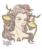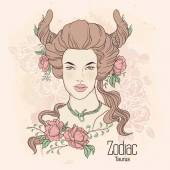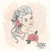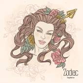 Zodiac. Vector illustration of Pisces as girl with flowers.