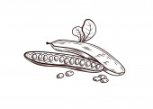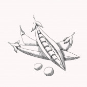 Zielony groszek w stylu vintage. Linia sztuka wektor ilustracja