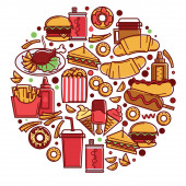 Zdjęcie "Zestaw z fast foodów burger ikony kontur z hot-dog" może być wykorzystywane do celów osobistych i komercyjnych zgodnie z warunkami zakupionej licencji Royalty-free. Obraz jest dostępny do pobrania w jakości wysokiej rozdzielczości do 5760x3840.