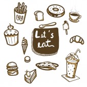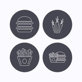 Zestaw z fast foodów burger ikony kontur z hot-dog