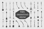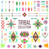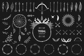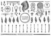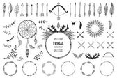 Ręcznie rysowane plemiennych zestaw z łuków, topory, strzały, pióra, Dreamcatchers, byki czaszki, elementy nakrycia głowy wojny. Wektor etniczne, indyjski, Aztec, Hipster ilustracji.