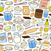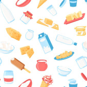 Wektor bezszwowy wzór z ręcznie rysowane kolorowe produkty mleczne,