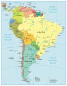 Szczegółowa mapa polityczna Ameryki Południowej na białym tle