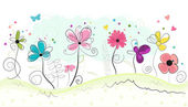 Wiosna czas kolorowe kwiaty Doodle. Streszczenie kolorowy kwiatowy tło wektorowe