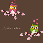 dwie zabawne, miłość sowa siedzi na gałęzi kwitnących