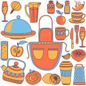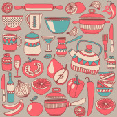Doodle styl wzór przybory kuchenne