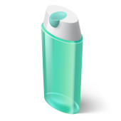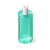 Pojedynczy Aquamarin izometryczny butelki szamponu na białym