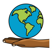 Charakter ręki trzymającej na planetę ziemię. Pochodzenia afrykańskiego. Idealny dla celów informacyjnych i instytucjonalnych