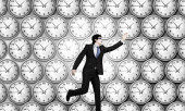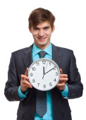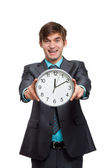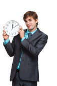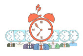 Mężczyzna sylwetka komplet czerwony krawat budzik głowy termin koncepcja
