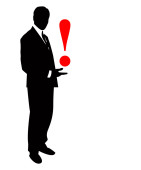 Człowiek sylwetka komplet krawat czerwony wykrzyknik głowy koncepcja