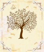 Wektorowych ilustracji: karty w stylu etnicznym. Drzewo z hieroglifów. Prymitywne onament.