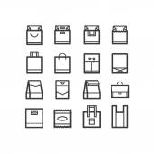 Zestaw ikon linii pól i obiektów pakiet, narzędzi elementów. Zrób pudełko, papierowa torba, torby bawełniane, plastikowej torbie, pojedyncze pakowanie.