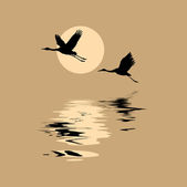 sylwetka żurawia na tle słońca, ilustracji wektorowych