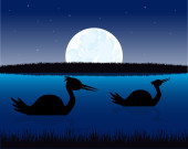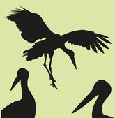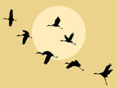 Żuraw z pisklę sylwetka na tle słońca, iluś wektor