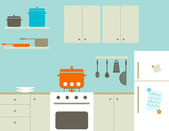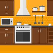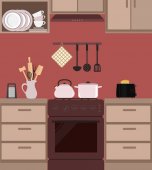 Ilustracja wektorowa kuchnia z meblami. Naczynia kuchenne
