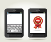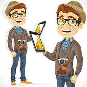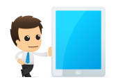 ładny biznesmen w garniturze pokazuje zdjęcie ośrodek na telefon
