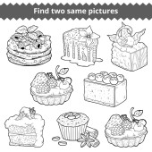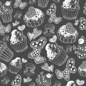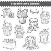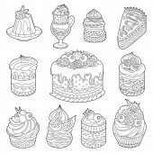 Kolekcja czarno-białe słodkie wypieki. Ciastka, babeczki i sernik
