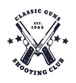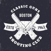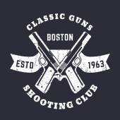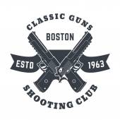 Patriots klub rocznika logo z skrzyżowanymi automatycznych pistoletów, znak sklep pistolet z karabinów szturmowych, pistolet sklep godło, wektor ilustracji